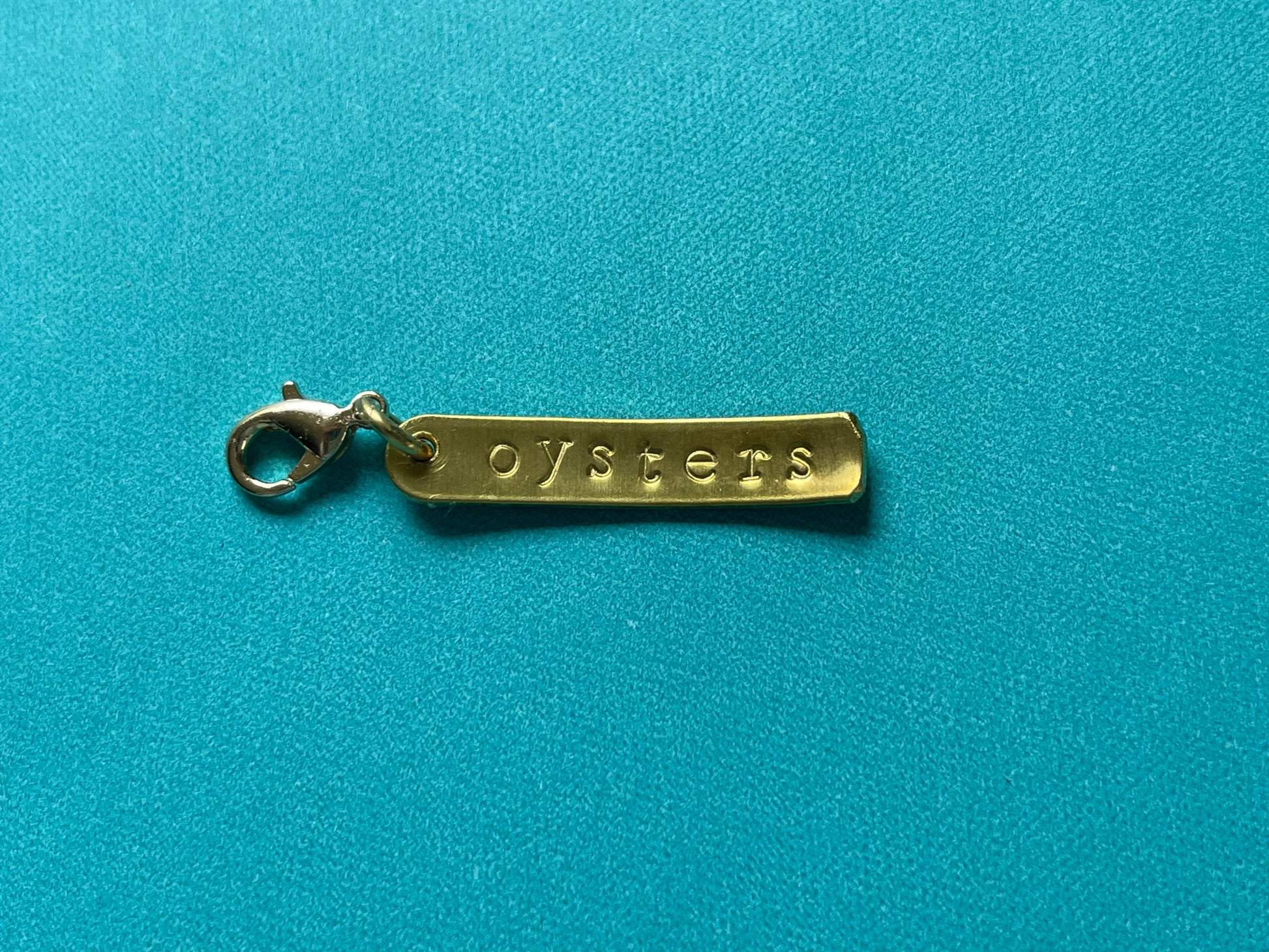 Our first batch of custom made charms are now available! Support your love of the saltwater, oysters, oyster cheers, clams, kelp, scallops, and more. These can be hooked onto keychains, zippers, and much more.